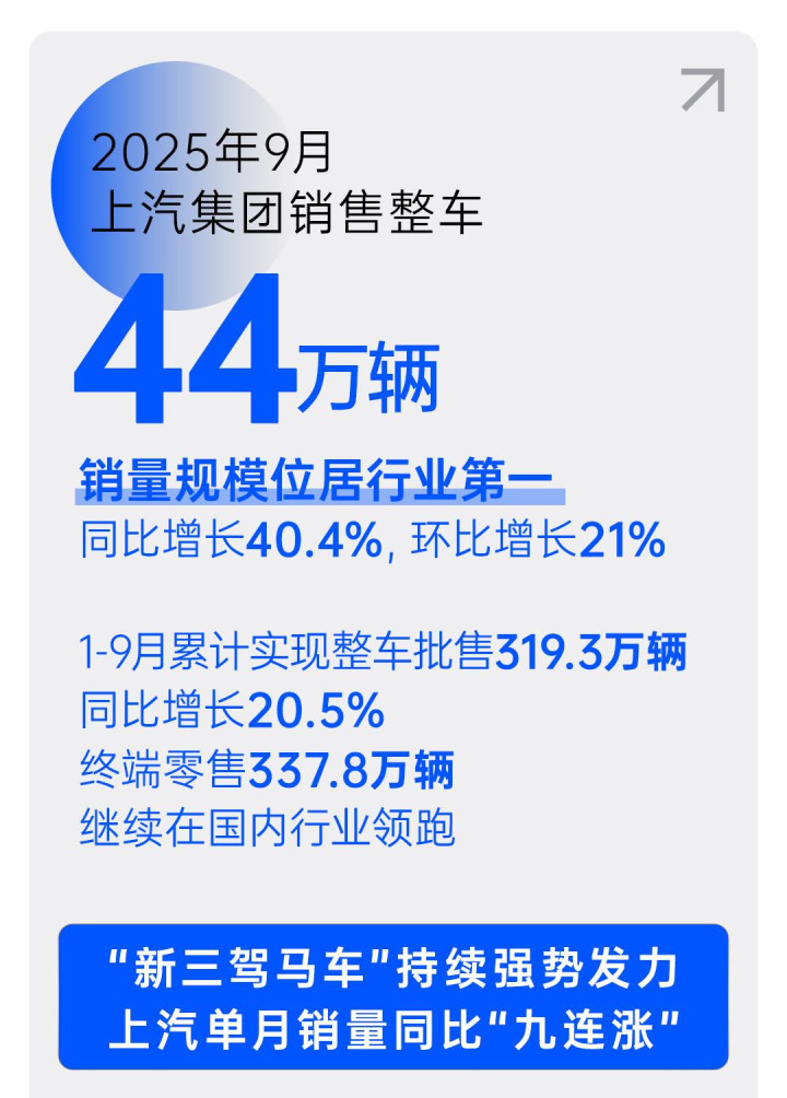 自2024年下半年启动全面深化改革以来,上汽集团通过一系列战略性调整,在市场竞争日益激烈的环境下展现出强劲的发展韧性。今年1~9月,上汽集团累计实现整车批售319.3万辆,同比增长20.5%,实现2025年月销量“九连涨”,终端零售337.8万辆,继续领跑行业。这一系列亮眼数据的背后,是上汽集团在组织架构、技术研发、产品布局和全球运营等多维度深化改革成果的集中体现,标志着其全面深化改革已进入收获期。