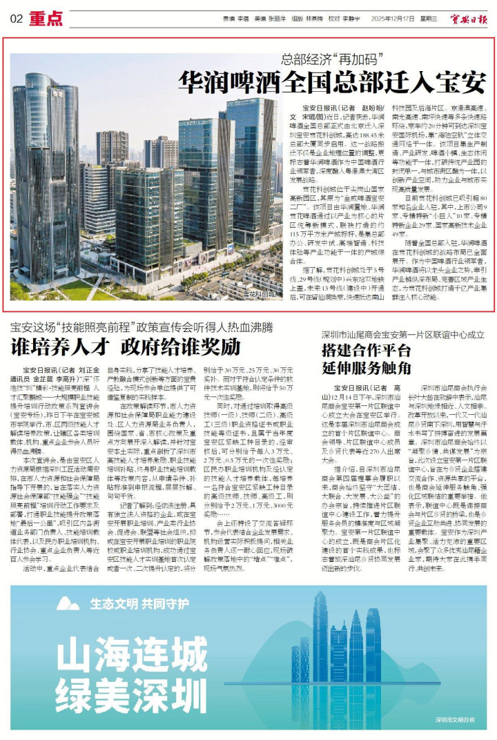 近日,记者获悉,华润啤酒全国总部正式由北京迁入深圳宝安雪花科创城,高达188.45米总部大厦同步启用。这一战略搬迁不仅是企业地理位置的调整,更标志着华润啤酒作为中国啤酒行业领军者,深度融入粤港澳大湾区发展战略。